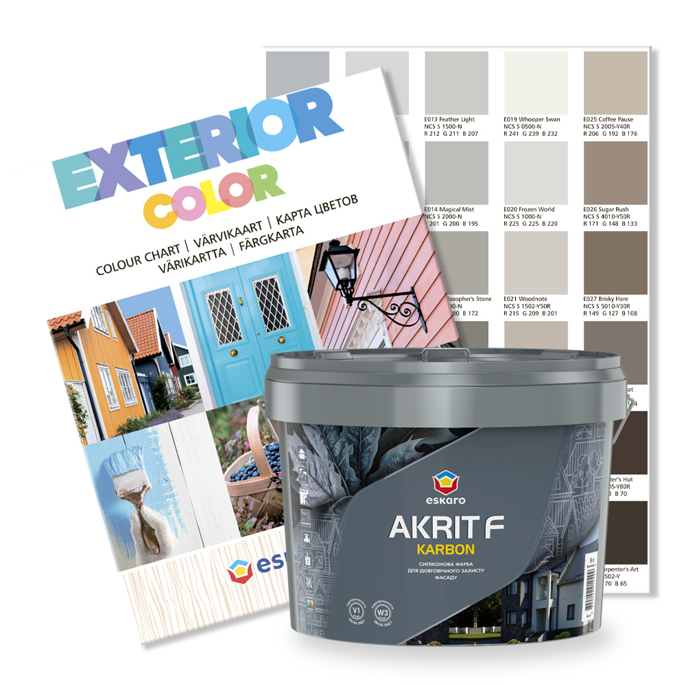 *Об’ємом 9 л фарби Akrit F Karbon TR достатньо, щоб покрити приблизно до ≈ 45-72 м² в один шар за умови нормально підготовленої гладкої поверхні.