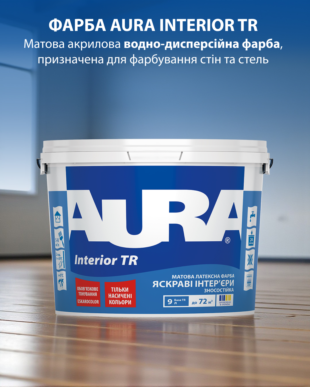 Матова інтер'єрна фарба Aura Interior TR 0,9л (00000043766)