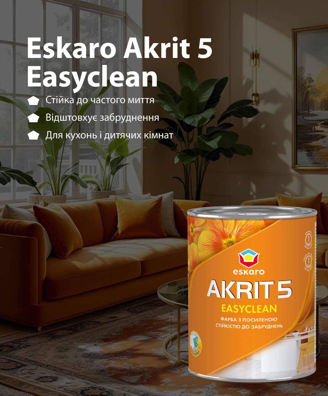 Акриловая матовая краска Akrit 5 Easyclean 0,85 л (Е0000000637)