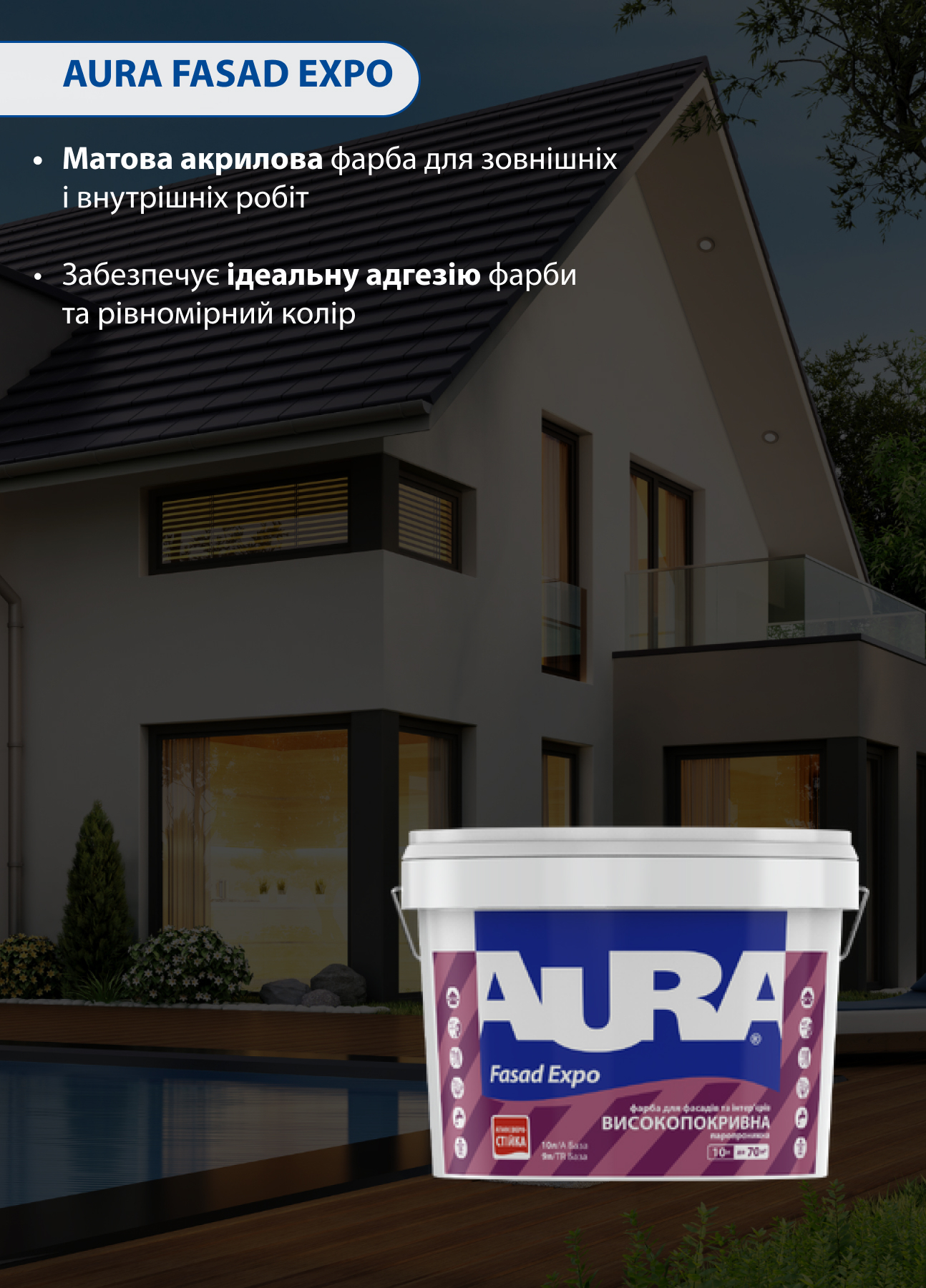 Матовая акриловая краска для наружных и внутренних работ.