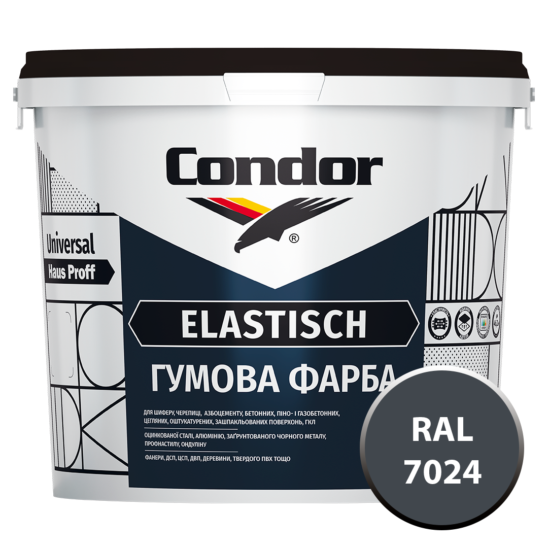 *Объема 6 л краски Condor Hausproff Elastisch достаточно, чтобы покрыть примерно до 24-40 м² в один слой при условии нормально подготовленной гладкой поверхности.
