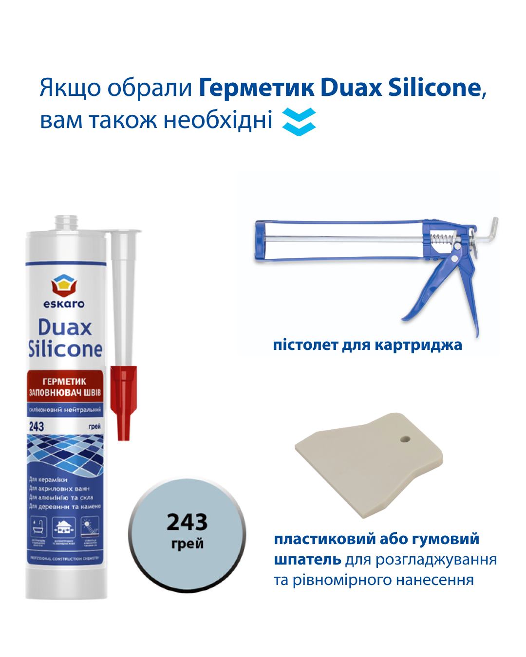 - 100% силикон - Не дає усадки. - Повторяет цвета фуги Eskaro Duax Epoxy. - Устойчив к появлению грибка и плесени, атмосферным факторам и УФ. - Твердеет под воздействием влажности воздуха, формируя водонепроницаемый эластичный шов. - Без запаха. Химически нейтральный. - Не вступает в реакцию с поверхностями, не оставляет пятен на краях пористых материалов. - Образует долговечный шов, устойчивый к воздействию бытовой химии и старению. - Удобен в работе, не растекается и легко разравнивается. |